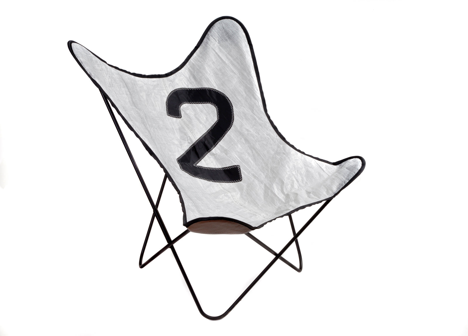 Fauteuil AA Butterfly en voiles de bateaux recyclées. Numéros aléatoires