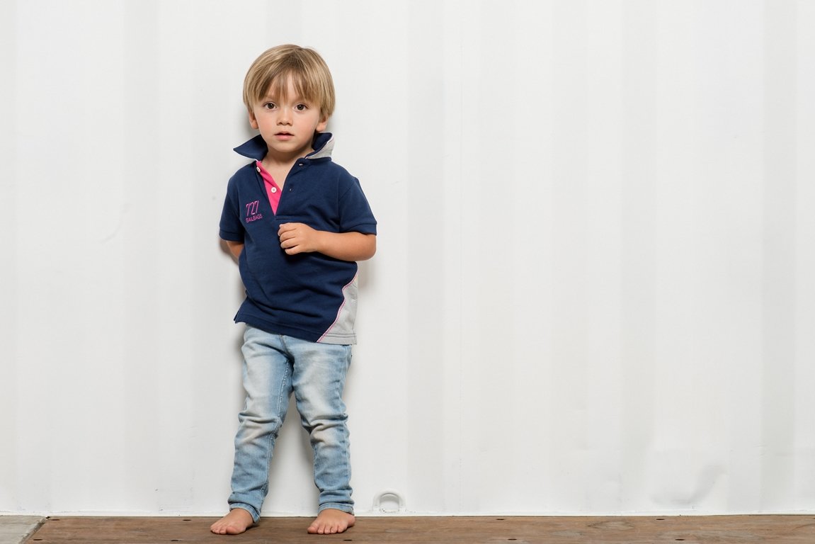 Polo manches longues en coton et voiles de bateaux recyclées Marine et rose Design : Beyou / Roger créateurs Voile : Spinnaker Bateau / skipper : IMOCA 60' Océan / course : Tour du monde en solitaire 2008 - 2009