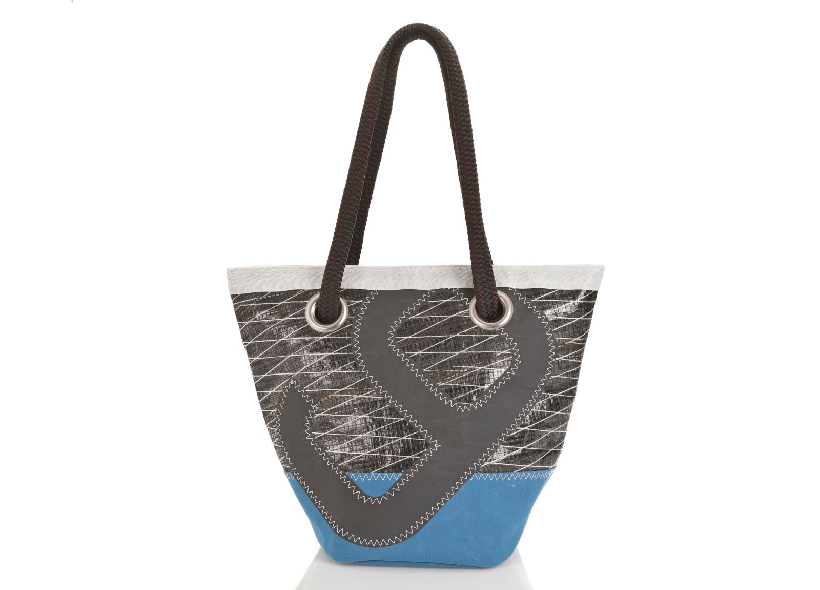 Sac à main en toiles de voiles de bateaux recycléesN° : 1/1 Création uniqueDesign : Roger / Beyou créateursVoile : GénoisBateau / skipper : Farr 30Océan / course : Tour de France à la Voile