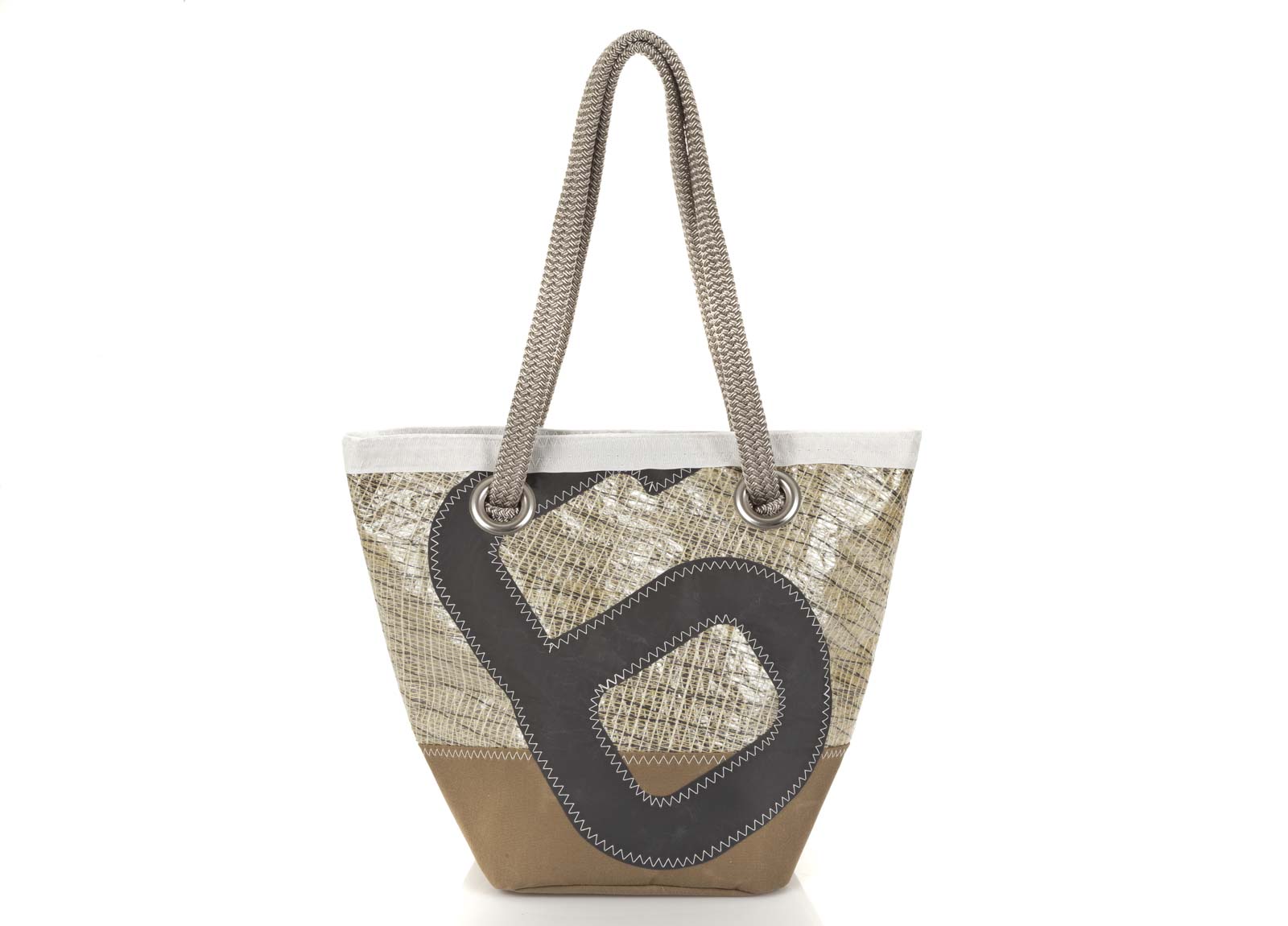 Sac à main en toiles de voiles de bateaux recycléesN° : 1/1 Création uniqueDesign : Roger / Beyou créateursVoile : GénoisBateau / skipper : J120Océan / course : Régate en équiâge