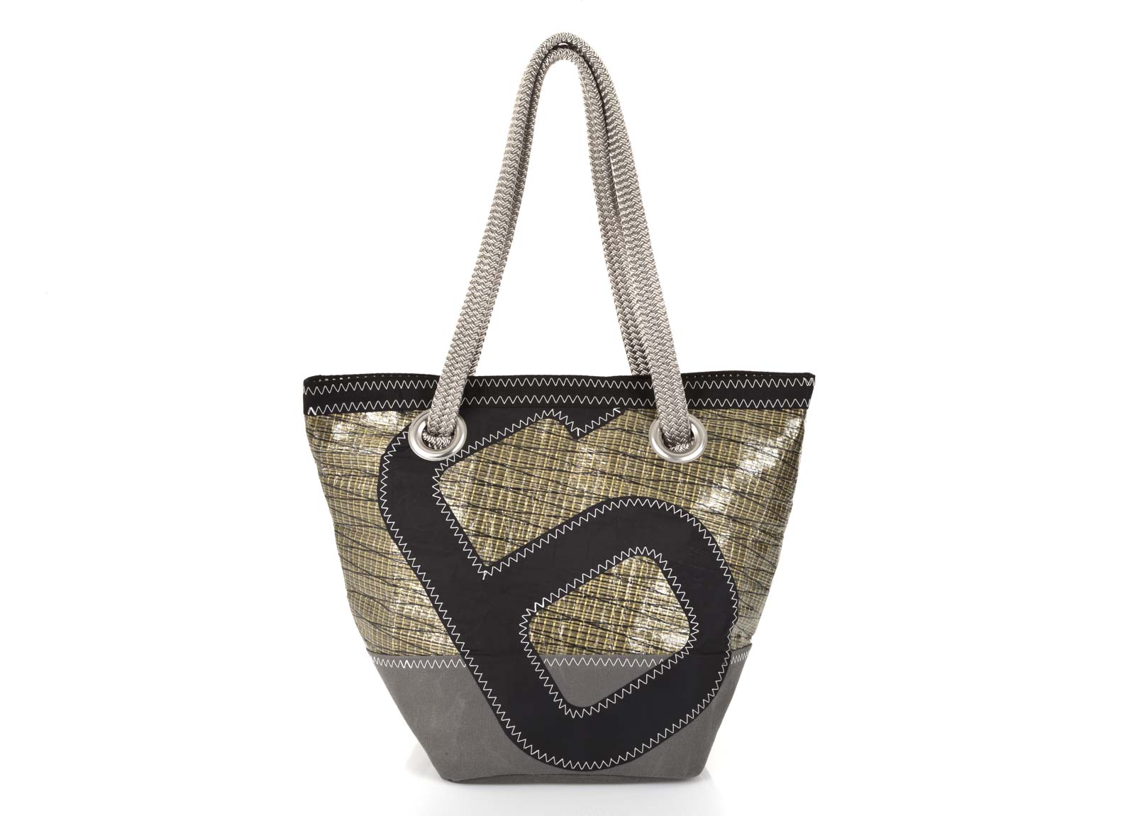 Sac à main en toiles de voiles de bateaux recycléesN° : 1/1 Création uniqueDesign : Roger / Beyou créateursVoile : GénoisBateau / skipper : J120Océan / course : Régate en équiâge