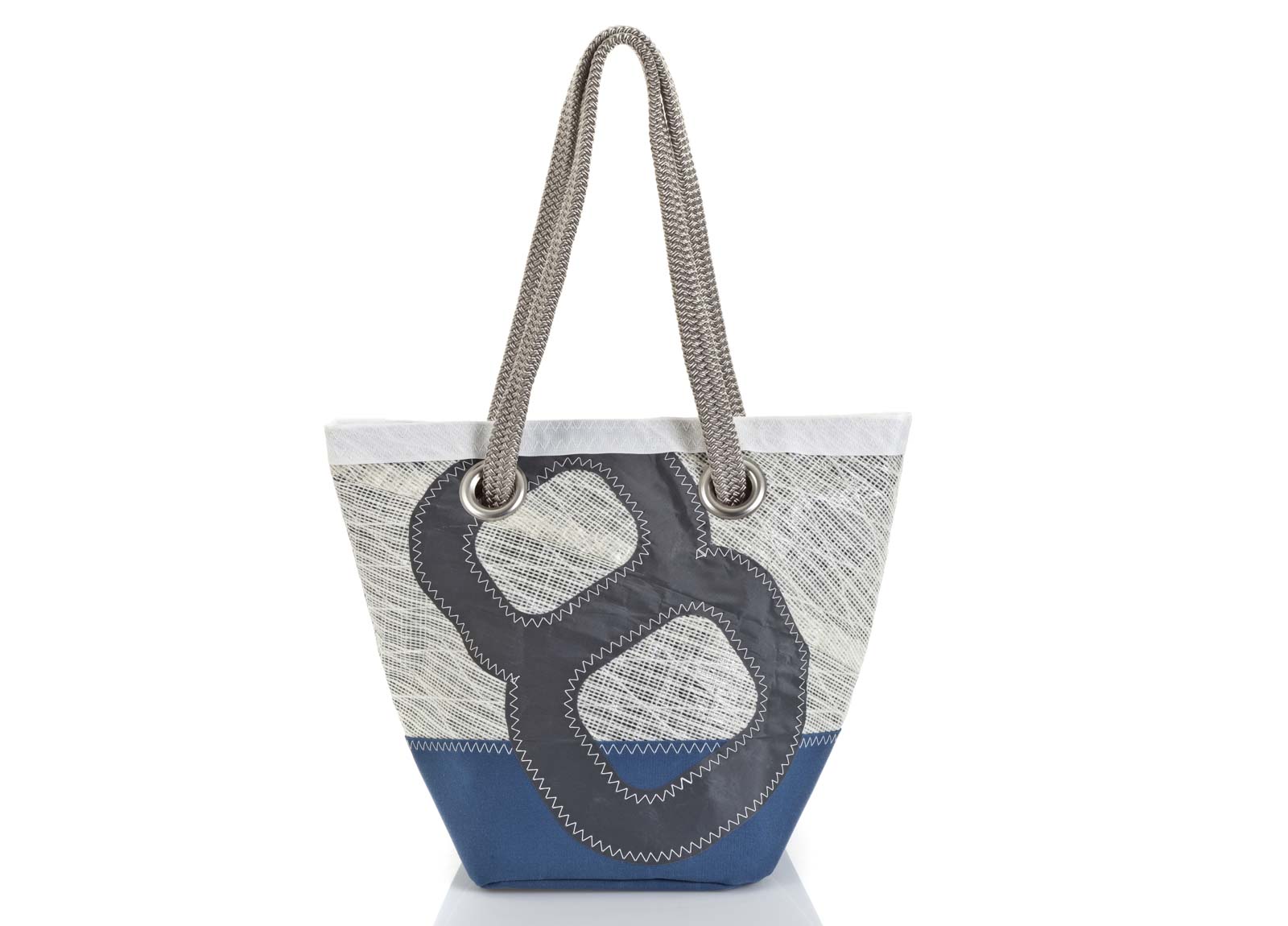 Sac à main en toiles de voiles de bateaux recycléesN° : 1/1 Création uniqueDesign : Roger / Beyou créateursVoile : Grand VoileBateau / skipper : FigaroOcéan / course : Transat