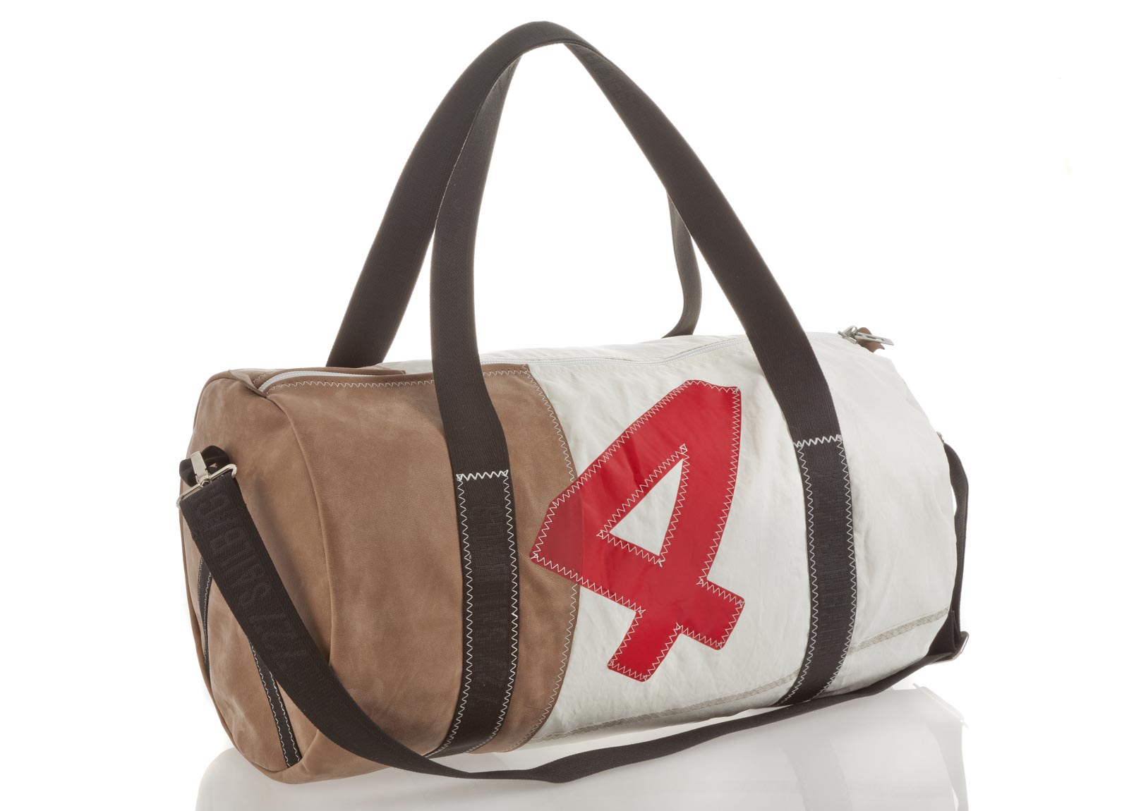 Sac de voyage en toiles de voiles de bateaux recyclées et cuir
