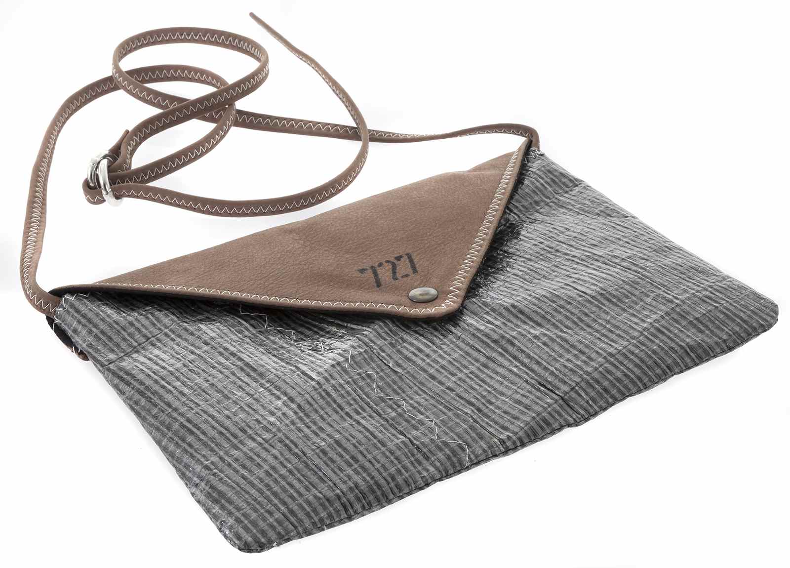 Elégant et tellement pratique, le sac Lys allie avec raffinement la voile recyclée et le cuir coloré. Un travail minutieux pour ce sac enveloppe dont la fabrication est 100% française unique et authentique.