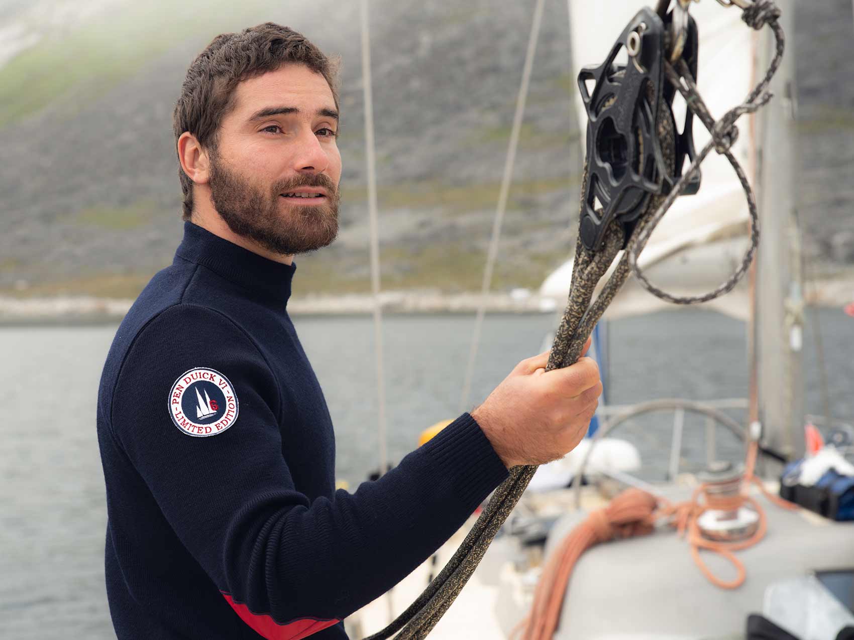 En partenariat avec Marie Tabarly, la collection « Pen Duick VI » raisonne comme un clin d??il à son père, Eric Tabarly. 727 Sailbags le met à l?honneur avec son pull marin homme grâce à des empiècements en voile de spinnaker rouge, du Pen Duick VI, ayant navigué avec Eric Tabarly.Ce pull marin homme 100 % laine vierge est une pièce sublime avec sa boutonnière en voile Dacron recyclé, et ses 3 boutons ancres marines. Une voile historique pour un pull bleu marine unique.