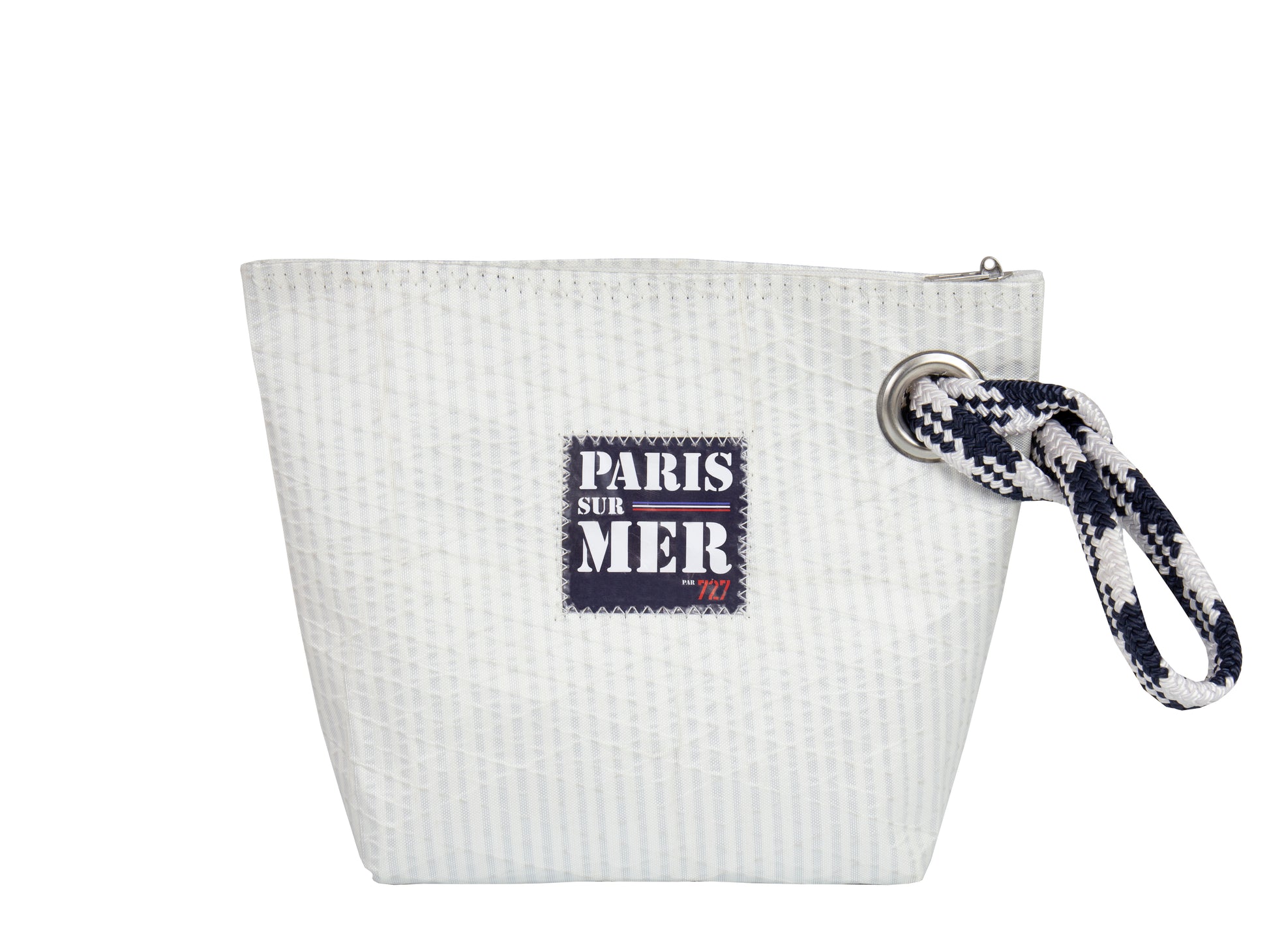 La collection Paris-sur-Mer évoque l?élégance et le raffinement des parisiennes, la proximité de la Seine et de ses berges, des lieux de détente et de sport.À la fois conçue comme une pochette légère pour sortir et comme une trousse de toilette, la Midinette ravira celles qui cherchent une grande pochette élégante pour parfaire leur bagagerie. L?anse extérieure est conçue pour tenir au poignet de manière ergonomique et agréable. Elle se décline dans cette collection avec une gaine bicolore au motif pied de poule... le comble du raffinement !Cette collection en série limitée est intégralement conçue et fabriquée en France, dans nos ateliers de Lorient.