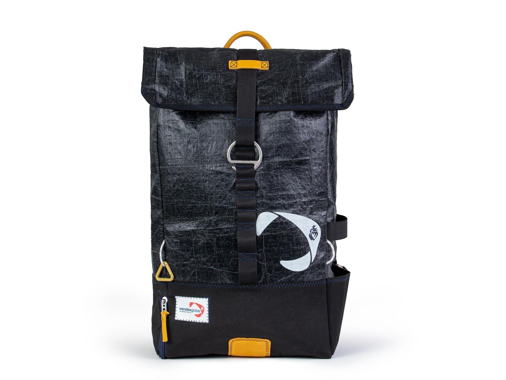 Le Vendée Globe, c?est la course à la voile autour du monde, en solitaire. Retrouvez dans cette collection dédiée, les pièces de bagagerie façonnées par 727 Sailbags, dans les voiles des coureurs ayant navigué sur les précédentes éditions. Le sac à dos Dinghy Vendée Globe est confectionné en voile 100% recyclée. Il vous accompagne dans toutes vos activités sportives, au bureau, ou bien encore en voyage !Confortable et pratique, il est doté d?une multitude de compartiments pour accueillir l?ensemble de vos effets personnels. Le c?ur vendéen est sérigraphié sur la voile, et le logo Vendée Globe cousu. Les détails et empiècements en cuir apportent au sac toute son élégance. Un certificat d?origine est cousu à l'intérieur, il garantit l'origine de la voile et présente le parcours de cette mythique course. Chaque pièce est unique et numérotée.