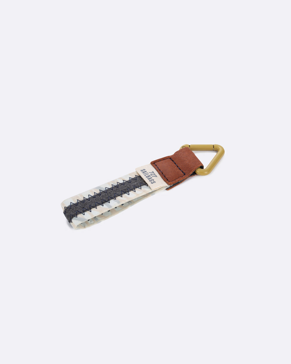 Le porte-clé, l'accessoire quotidien indispensable, solide et durable. Ce porte-clé est réalisé avec de cuir de vachette, et des chutes de voile.Le porte-clé est réalisé à partir de voile de bateau 100% recyclée.