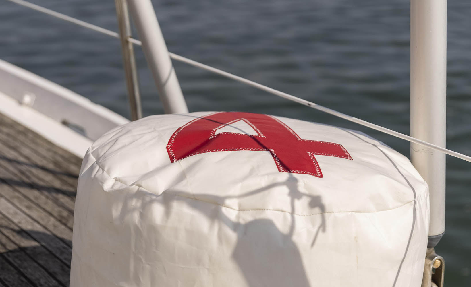 Le Pouf Solo Rouge est réalisé en voile de bateau 100% recyclée, le chiffre "4" rouge y est cousu avec notre iconique point zigzag. Une fiche d'authentification est cousue et certifie l'origine de la voile.
