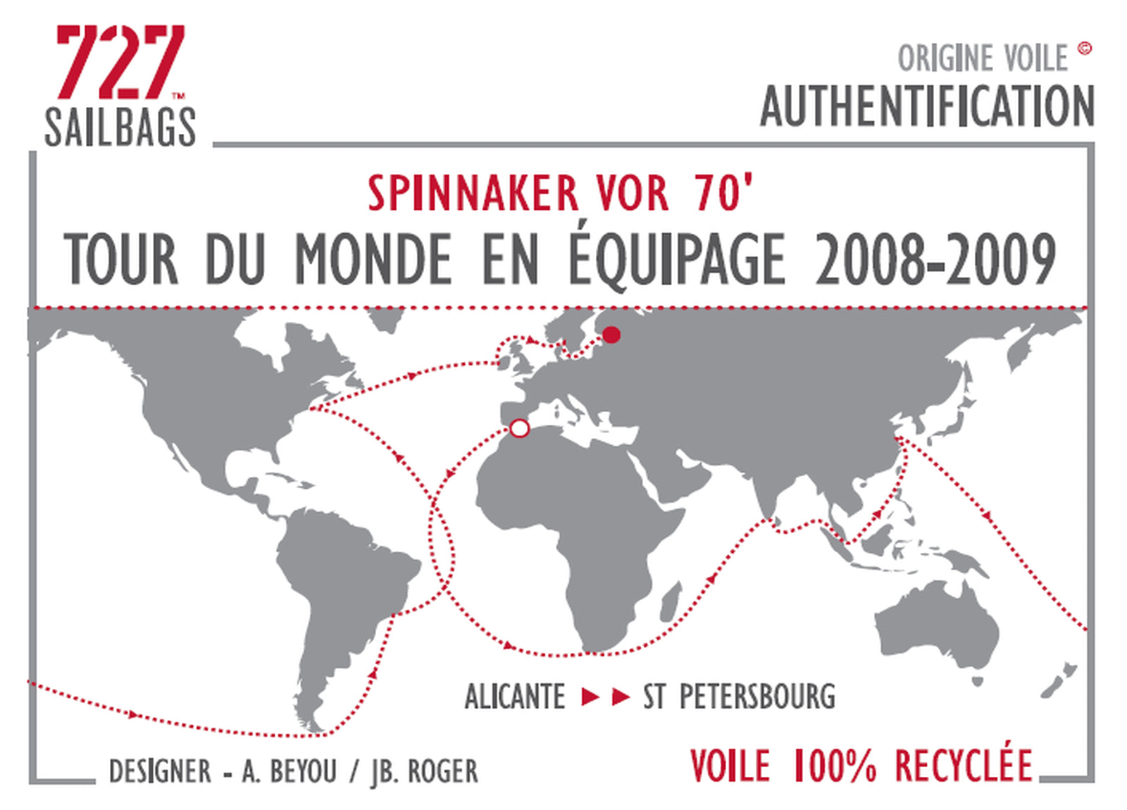 Polo manches longues en coton et voiles de bateaux recyclées Blanc et rose Design : Beyou / Roger créateurs Voile : Spinnaker Bateau / skipper : IMOCA 60' Océan / course : Tour du monde en solitaire 2008 - 2009