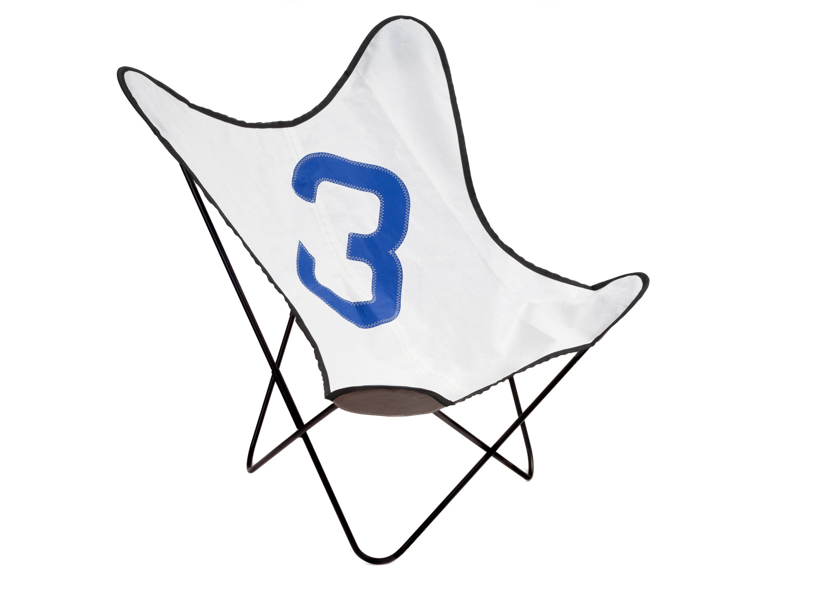 Fauteuil AA Butterfly en voiles de bateaux recycléesN° : 1/1 Création unique Design : Beyou / Roger créateursVoile : Grand voileBateau / skipper : Bateau de croisièreOcéan / course : Océan Atlantique, Mer Méditerranée