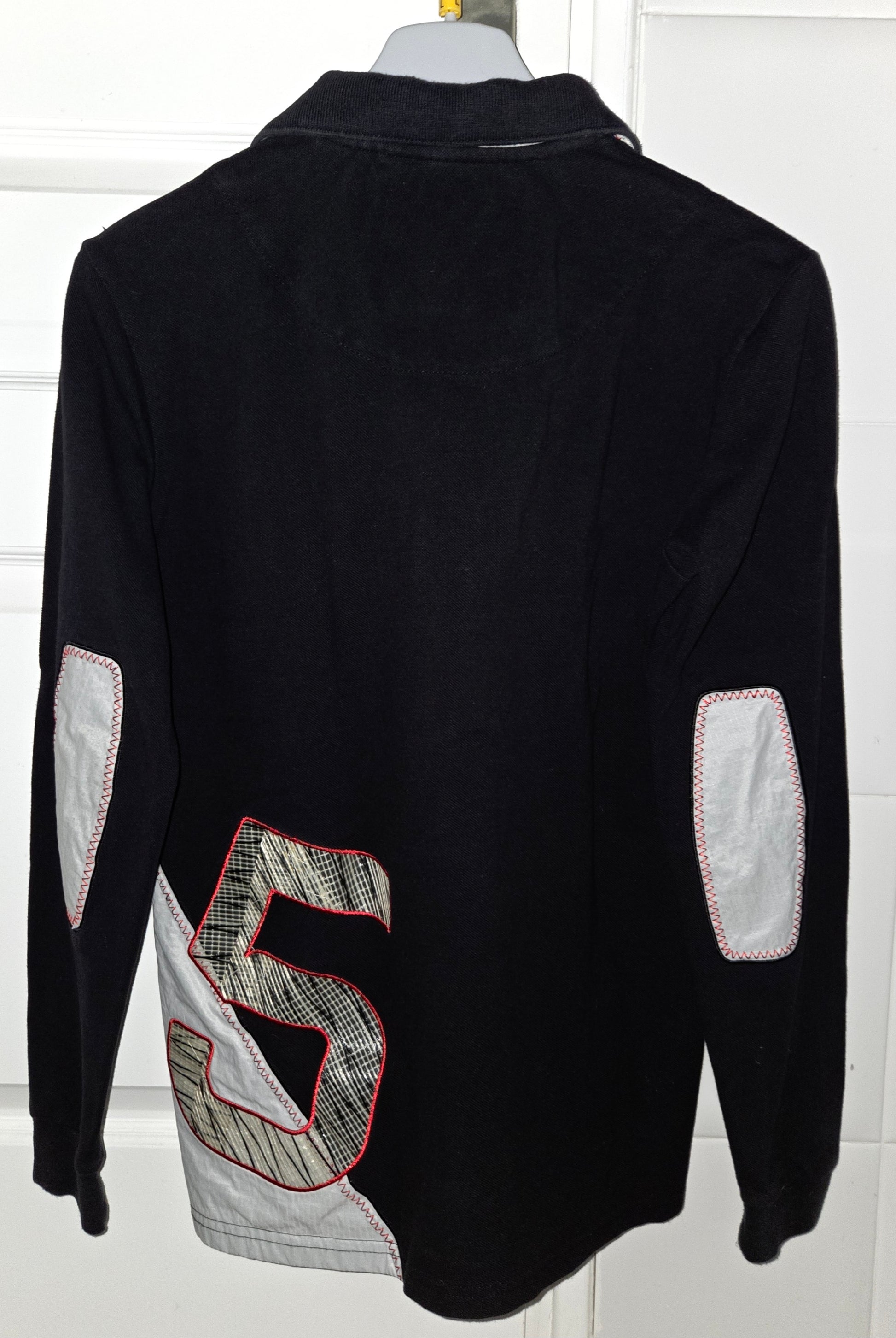 Polo manches longues en coton et voile recyclée5 boutonsVoile recyclée : coudières, arrière col et buste gaucheDoublage de la voile avec cotonFiche d?authentification brodée intérieur colTaille S, M, L, XL, XXL (coupe ajustée)